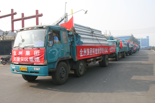 2008年“5.12”四川大地震期間,金洲集團和全體員工共捐款捐物500余萬元,以送溫暖、獻愛心的行動支援災(zāi)區(qū)抗震救災(zāi)。其中:公司專門捐贈兩火車皮新型飲用水綠色管道——鋼塑復(fù)合管85噸,用于災(zāi)區(qū)盡快修復(fù)供飲水設(shè)施;公司干部職工紛紛解囊捐款126余萬元,黨員繳納特殊黨費126850元。同時為積極響應(yīng)“汶川大救援,云南大行動”五大行動中之“七彩云南愛心大行動”,云南金孔雀旅游集團公司主動承接四川省臥龍中國大熊貓研究中心的“美茜”、“思嘉”、“芊芊”三只大熊貓的代養(yǎng)工作,并還向四川臥龍?zhí)貏e行政區(qū)捐贈200萬元。