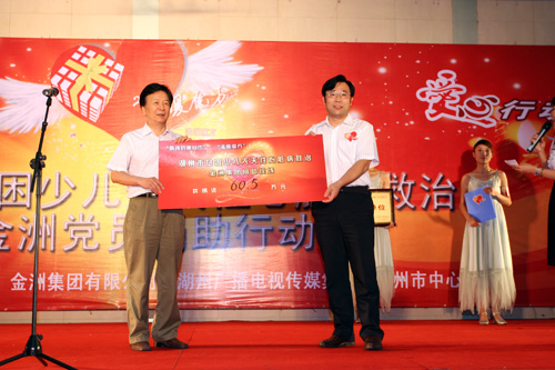 在捐助現(xiàn)場,金洲全體共產(chǎn)黨員紛紛慷慨解囊,為患病兒童送去自己的一份支持和關愛,以實際行動幫助他們順利接受治療,從而擺脫病痛、健康成長。此次現(xiàn)場黨員捐款近3萬5千元,加上企業(yè)捐款57萬元,共計60.5萬將全部用于患病少兒的救治。