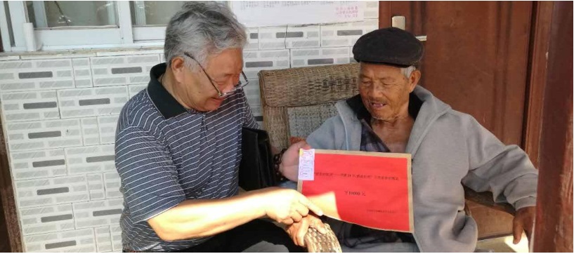 ▲慰問(wèn)寧洱縣勐先鎮(zhèn)安寧村毛株栗樹組老兵胡新章。胡新章,1956年入伍,1961年入黨,在當(dāng)兵期間落下了很多舊患,常年到處尋醫(yī)治病,但老夫婦兩人收入不到千元,無(wú)子女在身邊,家庭特別困難。