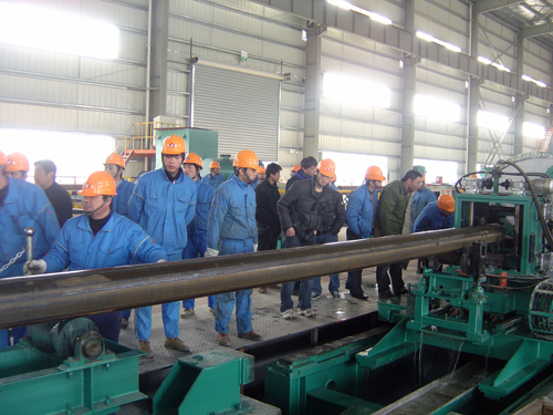 ERW219項(xiàng)目主設(shè)備引進(jìn)青島昊坤重型機(jī)械技術(shù)有限公司國內(nèi)一流的自動(dòng)化生產(chǎn)線,引進(jìn)沈陽新瑞特機(jī)電設(shè)備有限公司國內(nèi)一流的銑切鋸設(shè)備,還配套了鞍山長風(fēng)無損檢測(cè)設(shè)備有限公司在線板探、在線焊縫及離線焊縫超聲波檢測(cè)設(shè)備。車間主要生產(chǎn)Ф89-219mm,鋼級(jí)Q235-X70,產(chǎn)品品種為油井套管、小口徑厚壁管。一期工程(年產(chǎn)8萬噸Ф219mmERW油氣管生產(chǎn)線)順利完工,為二期工程(年產(chǎn)12萬噸國內(nèi)最先進(jìn)的鋼級(jí)達(dá)X80的螺旋縫埋弧預(yù)精焊油氣管生產(chǎn)線)的實(shí)施奠定了扎實(shí)基礎(chǔ)。