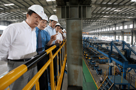 夏書記一行參觀了中海金洲公司ERW鋼管自動化生產(chǎn)線,公司常務(wù)副總馬福平代表中海油金洲對夏書記的來訪表示衷心感謝并匯報工作。馬副總說,在省委省政府及市委市政府的領(lǐng)導(dǎo)下,中海金洲將充分發(fā)揮中國海油和金洲集團(tuán)的優(yōu)勢,把學(xué)習(xí)實踐科學(xué)發(fā)展觀落到實處,為湖州市、為浙江省的經(jīng)濟(jì)發(fā)展和社會進(jìn)步作出貢獻(xiàn)。