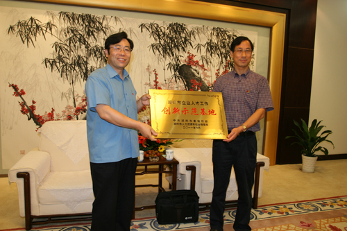 在聽取了俞總的匯報后,王伯安充分肯定了金洲集團(tuán)在人才隊(duì)伍建設(shè)、創(chuàng)新人才管理、維護(hù)和諧穩(wěn)定等多方面的工作,向集團(tuán)授予“湖州市企業(yè)人才工作創(chuàng)新示范基地”的獎牌,并關(guān)切詢問了企業(yè)的發(fā)展經(jīng)營情況。他表示,市委組織部、市勞動和社會保障局會進(jìn)一步加強(qiáng)與企業(yè)的溝通交流,全面做好人才工作的對接,為企業(yè)不斷完善人才體系建設(shè)提供輔導(dǎo)和幫助。