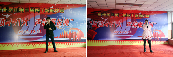 2012年12月18日,由集團(tuán)公司工會(huì)、團(tuán)委舉辦的“獻(xiàn)歌十八大、聲情滿金洲”第三屆職工歌詠比賽在管道科技園區(qū)舉行。各園區(qū)精心組織、積極準(zhǔn)備,來(lái)自生產(chǎn)車間、技術(shù)質(zhì)量、市場(chǎng)營(yíng)銷和行政部門(mén)的34位選手參加了比賽。金洲集團(tuán)副總裁、工會(huì)主席徐水榮,管道科技制造部總經(jīng)理沈百方、供銷部總經(jīng)理沈永泉,管道工業(yè)公司副總經(jīng)理鄭榮及中海金洲部門(mén)負(fù)責(zé)人、公司一線員工到場(chǎng)觀看了比賽,并為選手們加油助威。