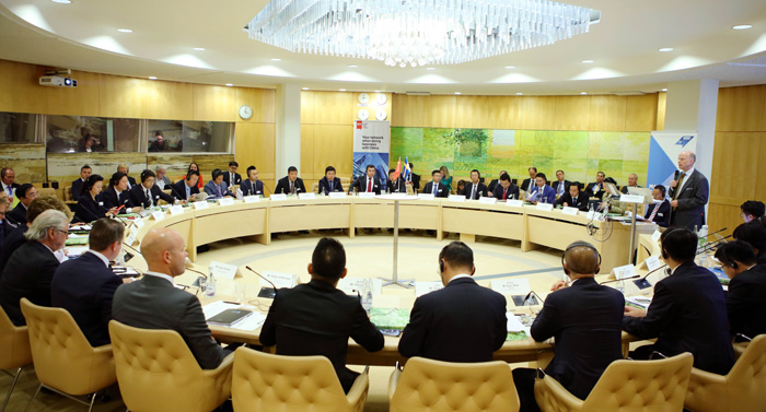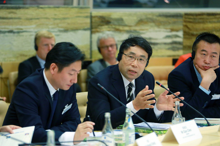 俞錦方董事長(中)圓桌交流發(fā)言