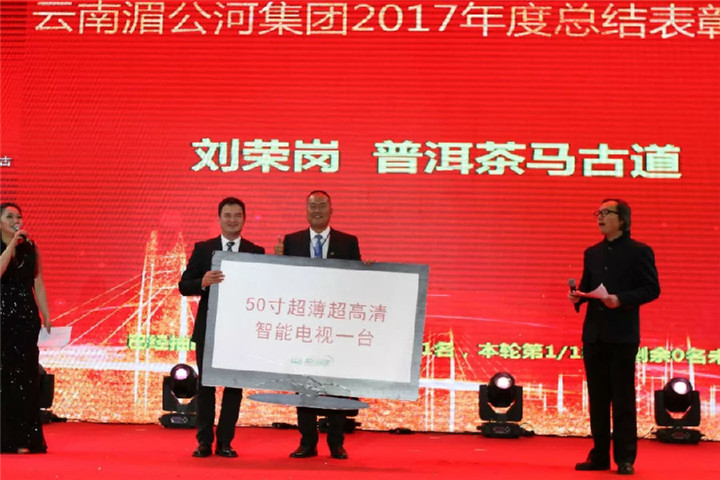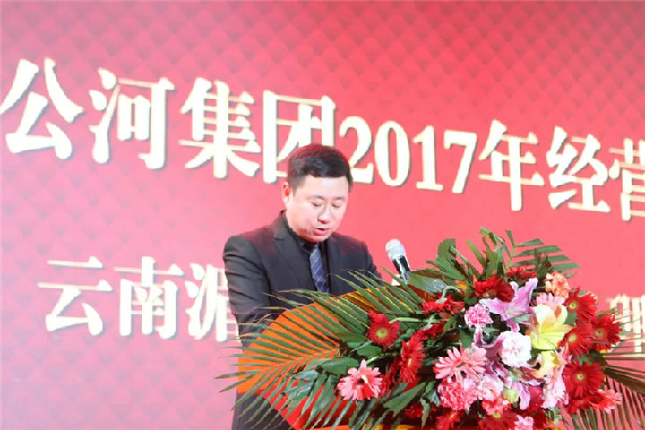 接著,金洲集團(tuán)總裁周新華先生上臺(tái)致辭。周總裁對(duì)湄公河集團(tuán)2017年取得的成績(jī)表示肯定。周總裁表示,2017年是湄公河集團(tuán)精彩紛呈、開拓創(chuàng)新的一年。對(duì)過去一年,湄公河集團(tuán)在集團(tuán)總經(jīng)理鮑總、股份公司董事長(zhǎng)李總等班子成員的帶領(lǐng)下,順利實(shí)現(xiàn)了包括茶馬古道旅游景區(qū)和普洱情境秀《茶馬古道》兩大項(xiàng)目對(duì)外營(yíng)業(yè)等多項(xiàng)大事表示祝賀。周總裁表示,這都將為公司新一年的業(yè)務(wù)發(fā)展和銷售創(chuàng)新奠定良好基礎(chǔ),勉勵(lì)湄公河集團(tuán)全體干部員工2018年繼續(xù)努力,取得更好、更大的成績(jī)。