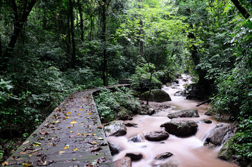 木棧道是森林里最自然的人工寫實。踩在踏板上發(fā)出與自然和諧的聲響,茂密的參天大樹透射出幾縷陽光灑在身上好不愜意,比起高樓聳立穿梭在飛奔的人群中與時間賽跑,我更愿意呆在這,關(guān)掉與外界一切聯(lián)系,做個山間野夫用力呼吸來凈化我已染塵多年的身心。在這里耳邊只有風(fēng)聲、蟲鳴、鳥叫,置身其中仿佛都不是自己,全身飄飄然放飛著靈魂,跟隨著水聲穿過密林來到一片開闊的土地上,高山流水,云霧繚繞仿佛來到仙境中,導(dǎo)游告訴我們說:“這是要下雨的節(jié)奏,不過沒關(guān)系,下雨了森林就開始唱歌了?!惫黄淙?,雨滴飄15.jpg落下來,奇妙的是它并不是涼的,飄灑在身上唱起了歡快的“滴答”歌,爬滿粗藤的大樹互相在雨里講訴著古老的故事,這個時候你只要用心聽,你就真的能聽到森林在唱歌,雨沒過多久就停了,我們圍成圈坐下來,呼吸著來自泥土的芬芳,雨后的森林更是通透,蝴蝶在溪谷間翩翩起舞,各種水禽在濕地印腳丫,偶爾會有幾只野猴來到你身邊向你討食,打量你一番甩尾走人,森林里隨處可見各種珍貴的活化石“石斛”、“中華桫欏”,導(dǎo)游說它們從恐龍時代就一直在這里直到至今,走走停停你完全不會感到疲憊,一會密林環(huán)繞,一會視野開闊,一會驚奇發(fā)現(xiàn)黑熊就在你身邊游走但人家對你不感興趣,一會乍一看才知道你踩的這個樹根只不過是十米開外的古樹的支腳,不管是天上飛的還是地上跑的,即使你突然闖入進來也能馬上與他們?nèi)跒橐惑w,這就是這片森林的胸懷,你倦了,累了,不能向前了,不妨自私的把靈魂托付給這片森林讓其為你凈化,升華。