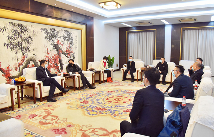 俞錦方董事長向余勝奎書記介紹企業(yè)相關(guān)情況