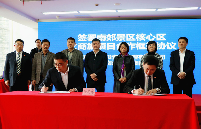 湖州市城投資產(chǎn)管理有限公司董事長(zhǎng)吳劍與云南湄公河集團(tuán)總經(jīng)理鮑建斌簽署南郊景區(qū)核心區(qū)文商旅項(xiàng)目合作框架協(xié)議