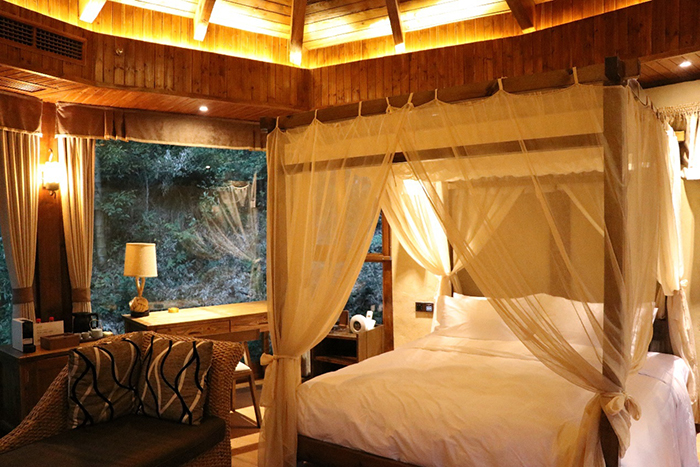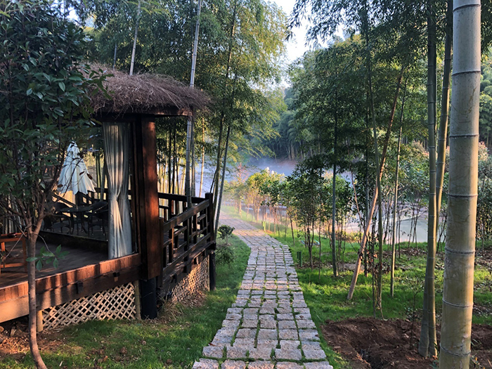 林立于竹海之中的獨(dú)棟精致木屋客房