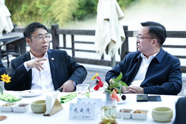 元成茂副主席聽(tīng)取俞錦方董事長(zhǎng)的介紹并作交流