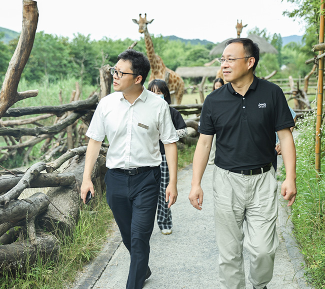 汪利輝執(zhí)行院長在長頸鹿莊園負責人的陪同下參觀莊園